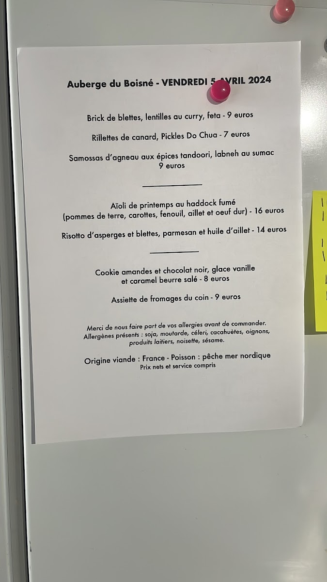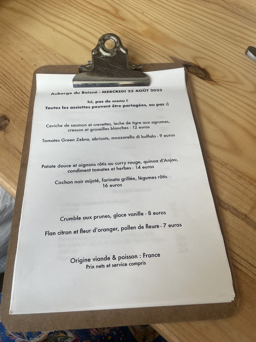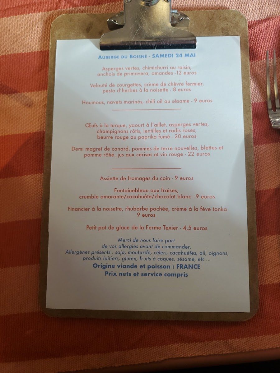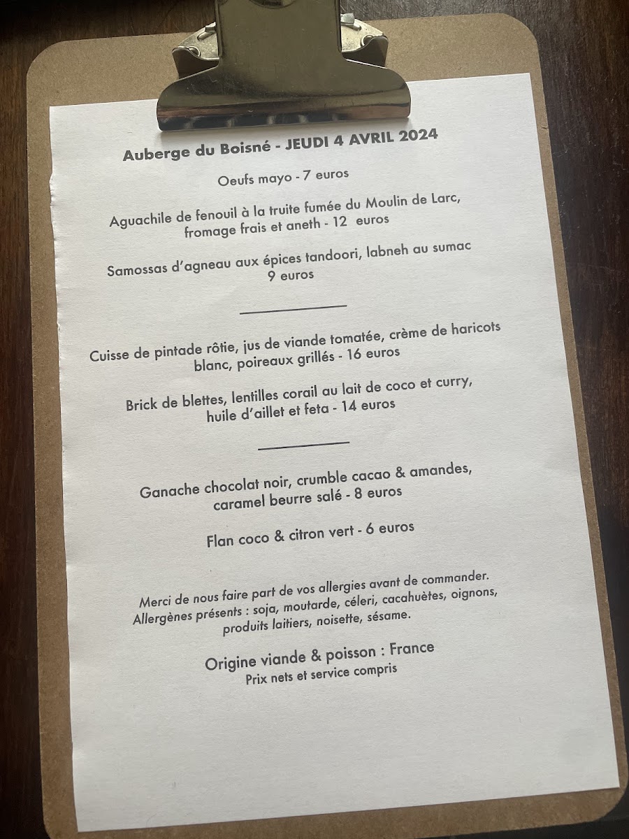 Auberge Du Boisné Menu