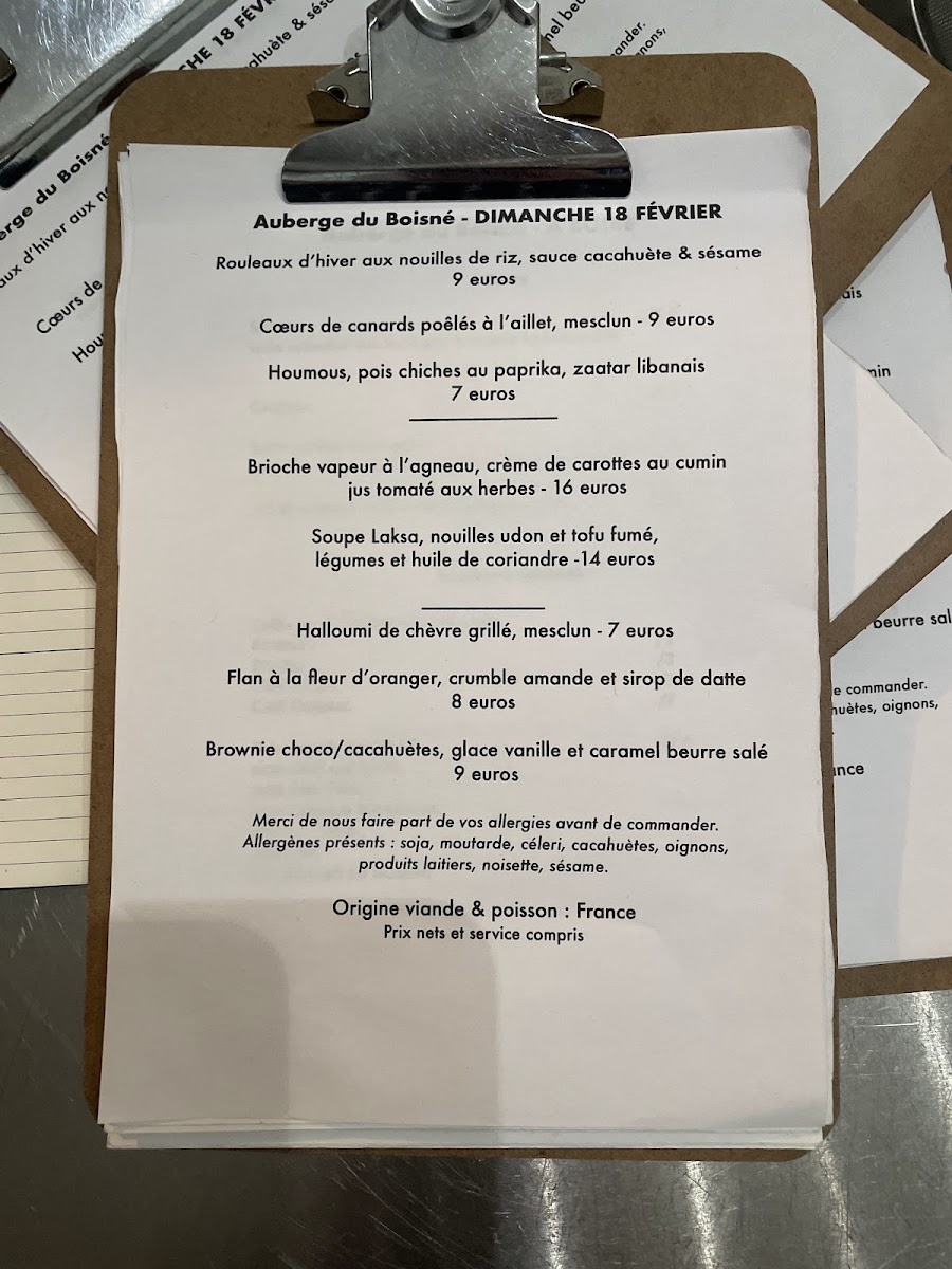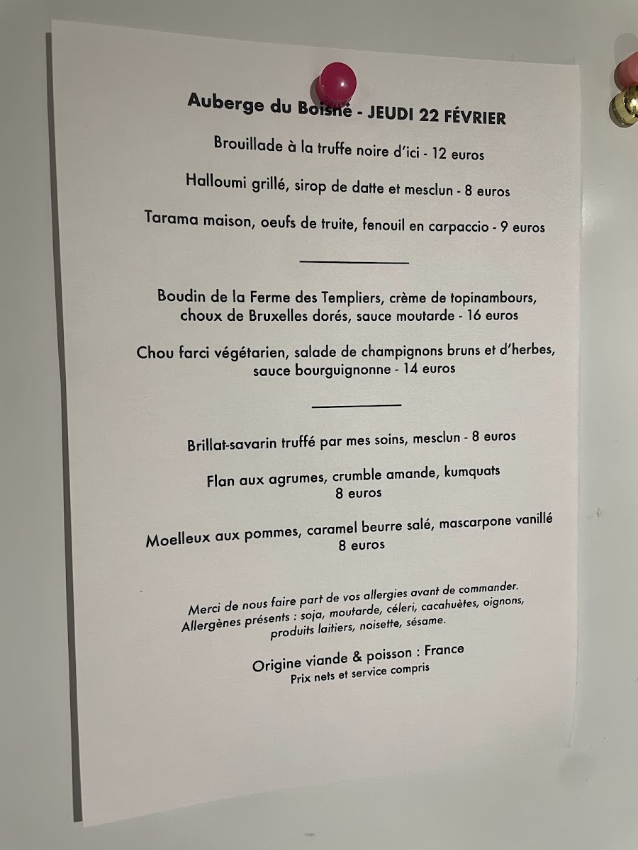 Auberge Du Boisné menu gallery